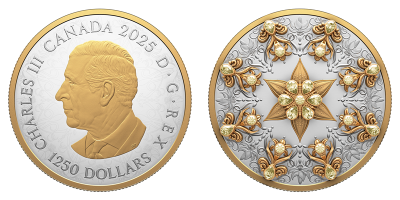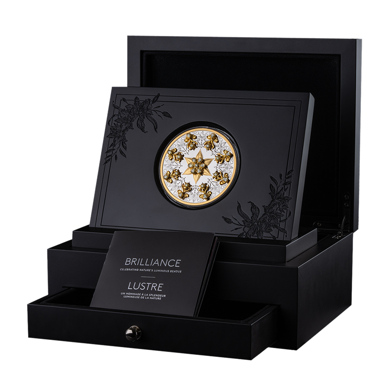 加拿大皇家造币厂于2025年发行的“光辉”精制铂币,便以加拿大百合为核心创作元素,融合先进造币工艺与珠宝镶嵌技法,既承载了本土文化内涵,又展现出高端藏品特有的奢华质感。该枚精制铂币成色为99.95%,重量为311.53克,直径为76毫米,面额为1250加拿大元,发行量仅10枚。